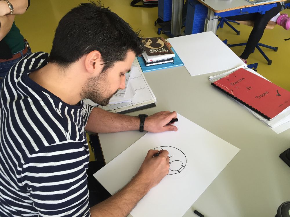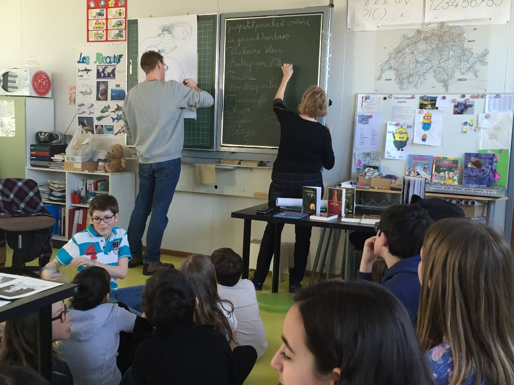 Après des mois de préparation, la tournée des auteurs et illustrateurs 2016 s’est déroulée sans encombre tout au long de la semaine dernière. 210 classes de toute la Suisse romande ont eu le plaisir de rencontrer un des 18 invités : l’occasion de discuter de leurs livres et de tout ce qui touche au monde de l’édition, mais aussi de la vie d’auteur ou d’illustrateur. Tous, adultes et enfants, en sont ressortis la tête et les mains pleines de jolis souvenirs!